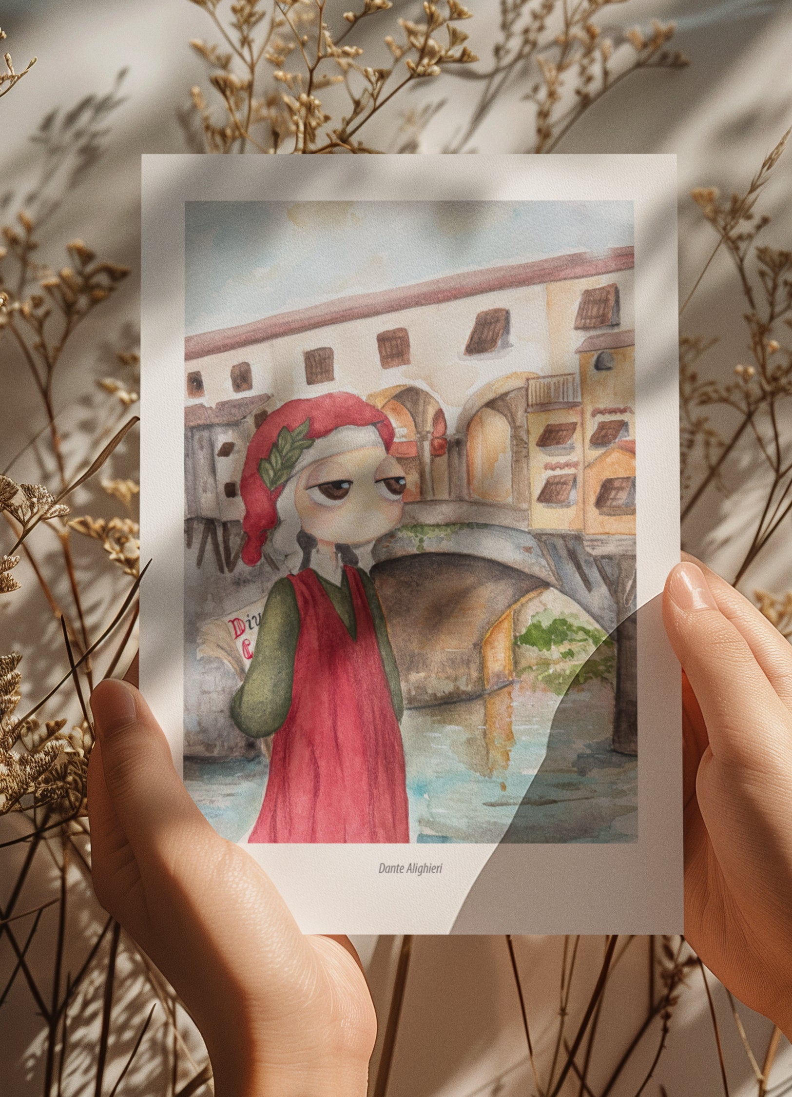 Dante - Stampa artistica su carta di cotone martellata 300 g, con colori brillanti e texture elegante. Perfetta per decorare ogni ambiente o da regalare. Ogni illustrazione è realizzata da Frastoart e riproduce fedelmente l’originale con qualità museale.