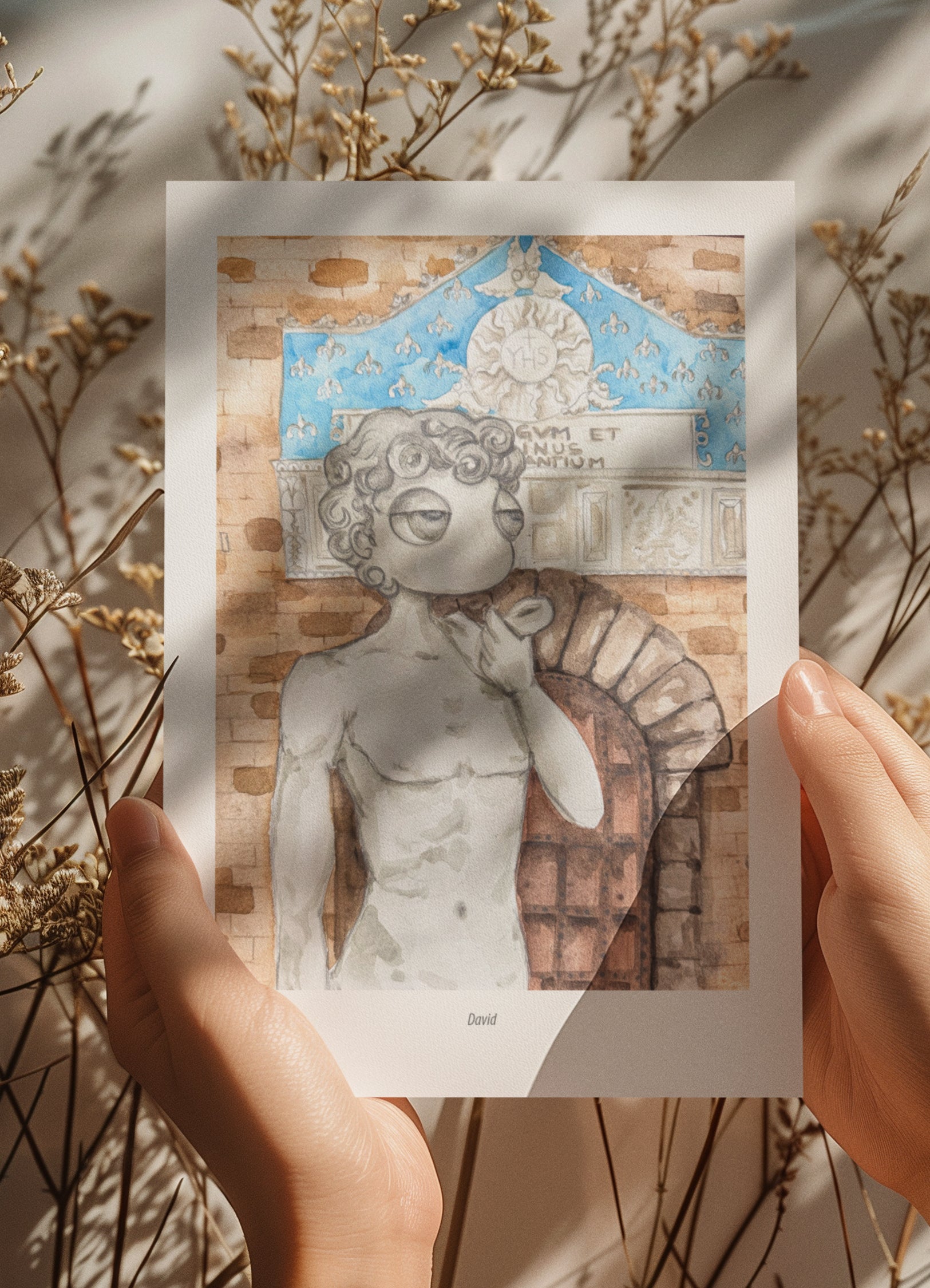 David - Stampa artistica su carta di cotone martellata 300 g, con colori brillanti e texture elegante. Perfetta per decorare ogni ambiente o da regalare. Ogni illustrazione è realizzata da Frastoart e riproduce fedelmente l’originale con qualità museale.