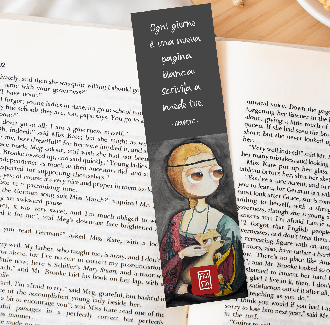 Segnalibro illustrato stampato su carta di cotone martellata da 300 gr, con bordi morbidi e finitura naturale. Perfetto per accompagnare le tue letture o come piccolo dono d’artista.