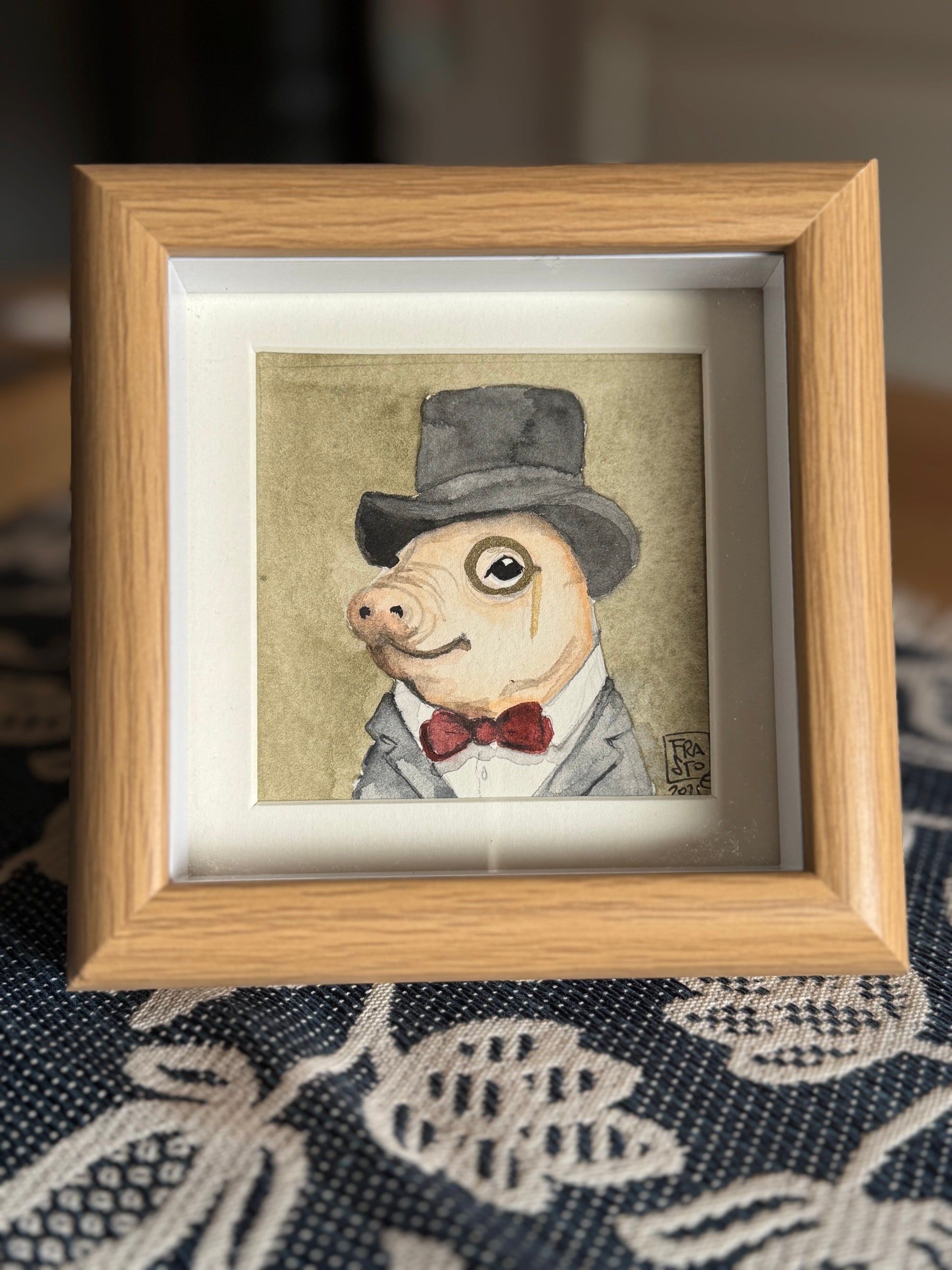 Lord Piggelton — Maialino dandy: lucida le scarpe come specchi e cucina marmellate segrete.