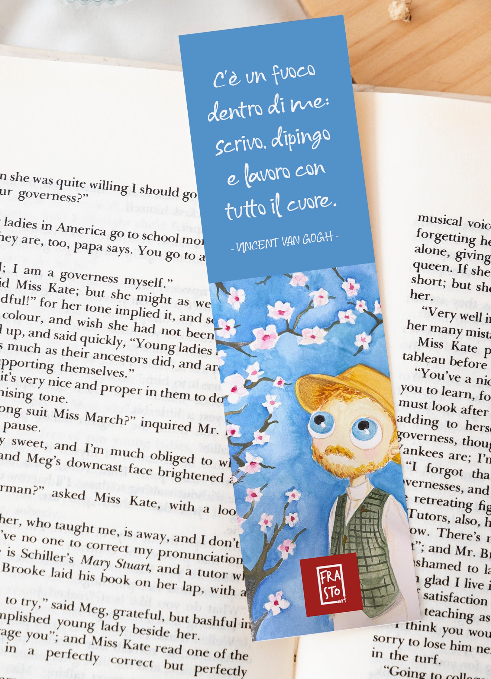 Segnalibro illustrato stampato su carta di cotone martellata da 300 gr, con bordi morbidi e finitura naturale. Perfetto per accompagnare le tue letture o come piccolo dono d’artista.